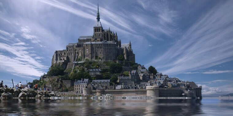 L'abbaye médiévale du Mont-Saint-Michel s'élève au-dessus des sables et des marées, un lieu de pèlerinage historique et une merveille architecturale.